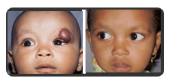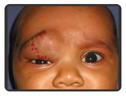In some cases, however, treatment is recommended. Some can cause medical problems, such as bleeding, ulceration, crusting or infection. In addition, some hemangiomas are in areas that can affect a vital organ, such as an ear (Fig. 2), an eye (Fig. 3), or a windpipe. Some also grow very rapidly and can cause deformation and / or destruction of the surrounding tissues (Fig. 4). In addition, the location of a hemangioma can be emotionally traumatic for the parents, making removal with cosmetic laser surgery an option for parents to consider seriously. This is particularly true if the hemangioma is in an area that can become easily irritated or ulcerated, such as in scalp, skin folds or in areas where clothing commonly rubs. In addition, having a hemangioma in an exposed area, such as on the face, neck or arms can cause social embarrassment to a child, particularly when the child begins interacting with peers.
