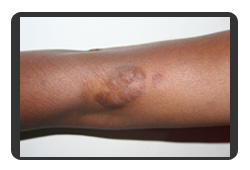 Because of the high rate of spontaneous resolution and non availability of an effectively curative treatment in the past, ‘ Masterly Inactivity‘ was advocated and practiced by physicians all over the world. But as much as 50% of those which spontaneously resolve leave behind a crumpled skin called ‘anetoderma‘ (Fig.5) as well as some objectionable marks. (Fig.6)